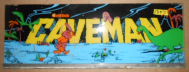 GOTTLIEB CAVEMAN Pinball Machine GLASS Marquee Header (1307) - AS IS - FREE SHIPPING