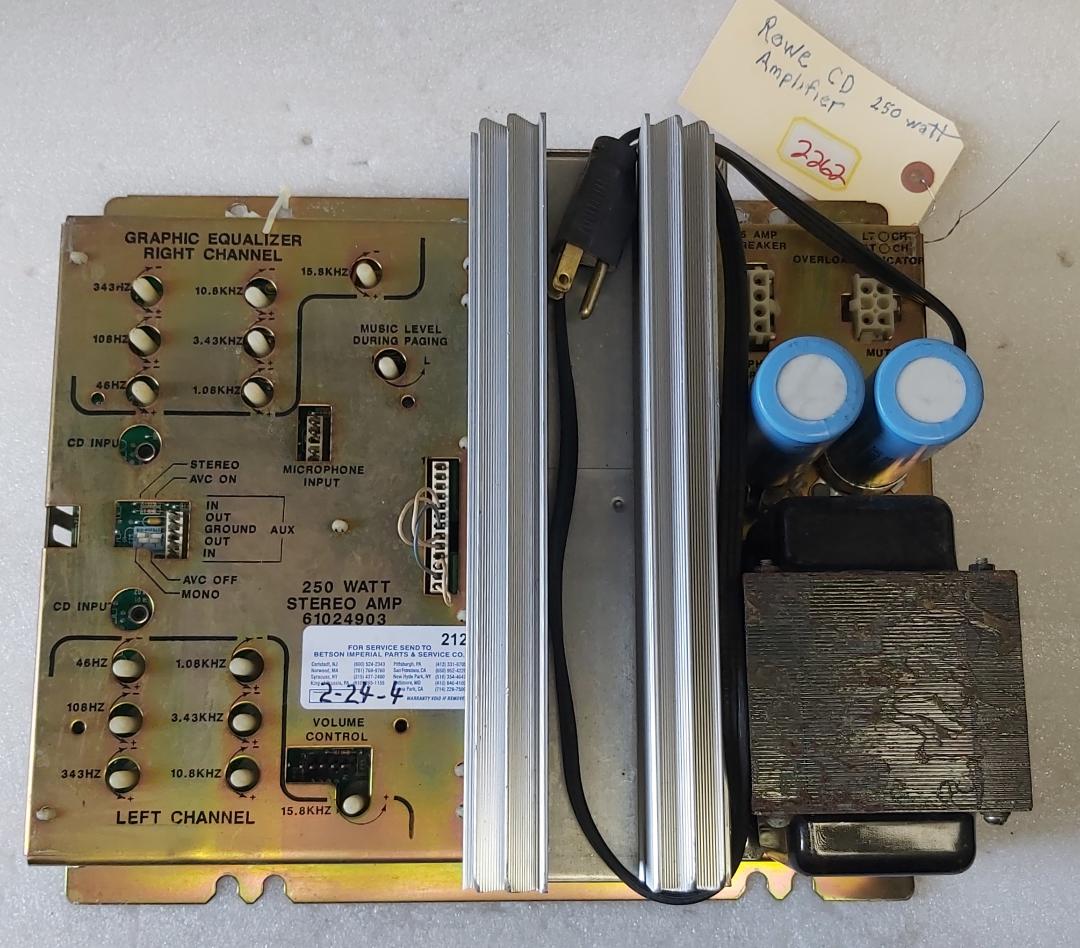 ROWE AMI CD 100A or B Jukebox 250 WATT STEREO AMPLIFIER #61024903 (2262) - WORKING - FREE SHIPPING