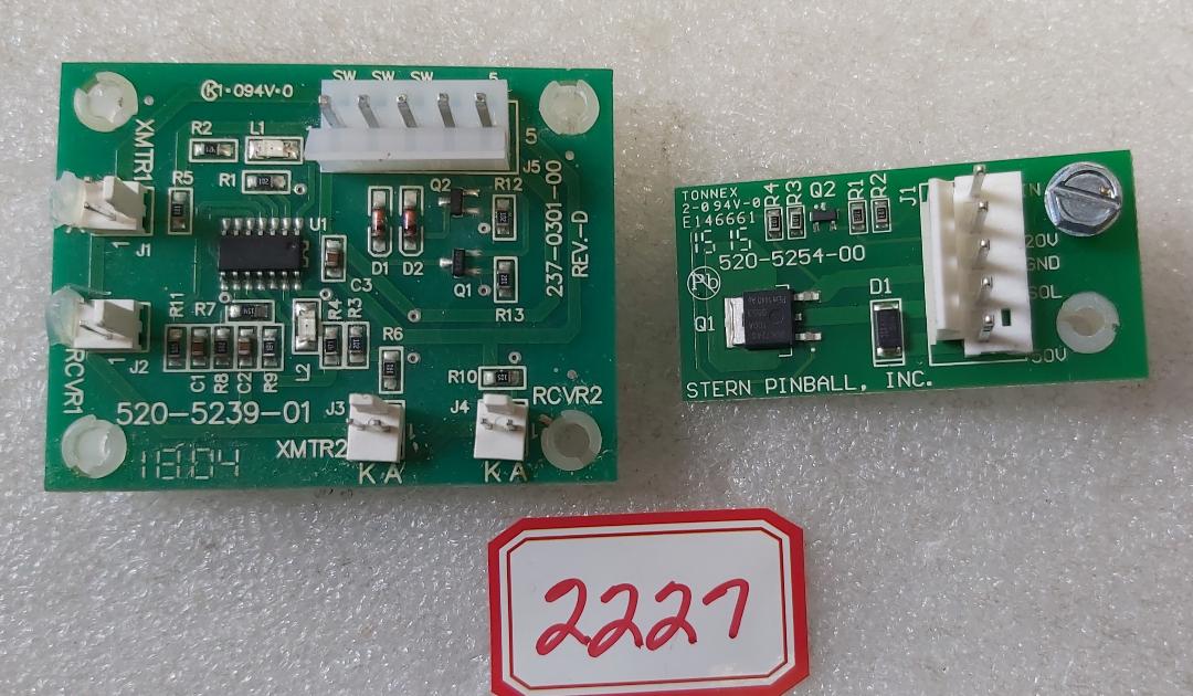 STERN METALLICA Pinball OPTO TRANSMITTER RECEIVER #520-5239-01 & STEP UP DRIVER #520-5254-00 Boards (2227) - NEW.