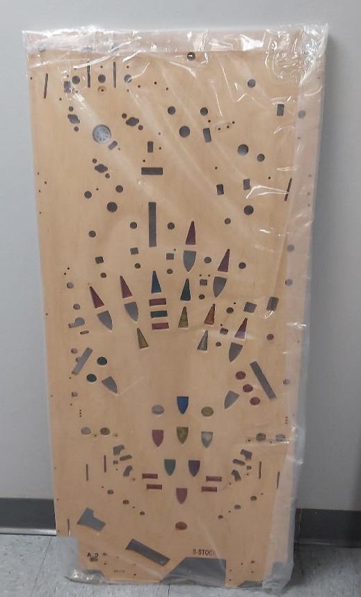 Playfield was photographed in the factory plastic bag it was received in and has never been removed. The plastic bag dulls the vibrant color of the playfield.
