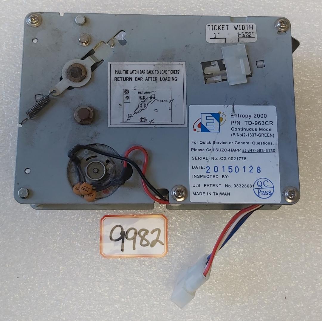 ENTROPY 2000 TICKET DISPENSER for REDEMPTION Arcade Game #TD 963CR (9982) - WORKING.
