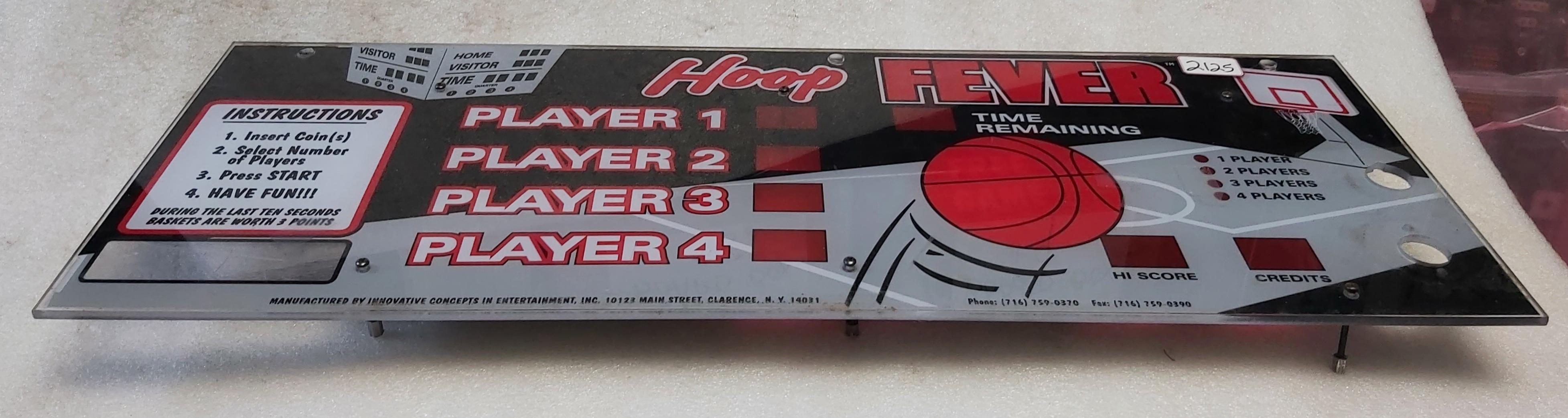 ICE HOOP FEVER Arcade Game PLEXIGLASS HEADER MARQUEE (2125) - AS IS - FREE SHIPPING