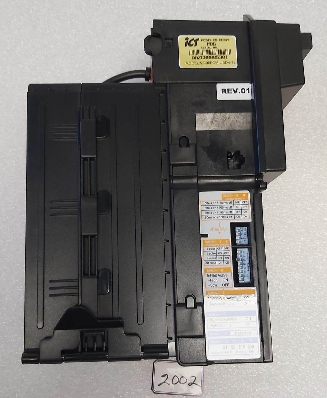 ICT V8-30FOM-USA4-T2 24V MDB Bill Validator Acceptor DBA #2002 - $1s thru 20s - New/Old Stock.