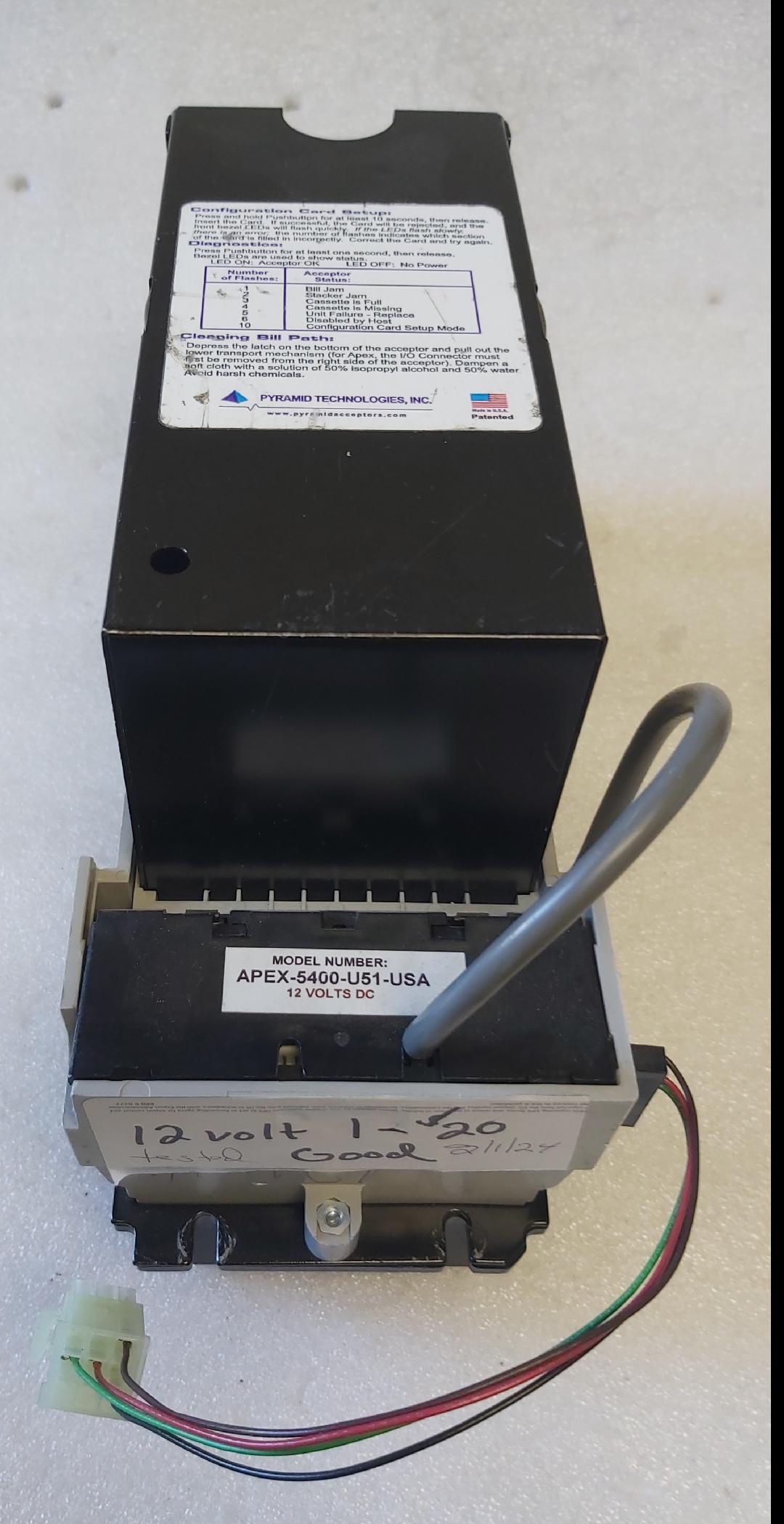 PYRAMID TECHNOLOGIES APEX-5400-U51-USA 12V Bill Acceptor (2100) - $1s thru 20s - WORKING - FREE SHIPPING