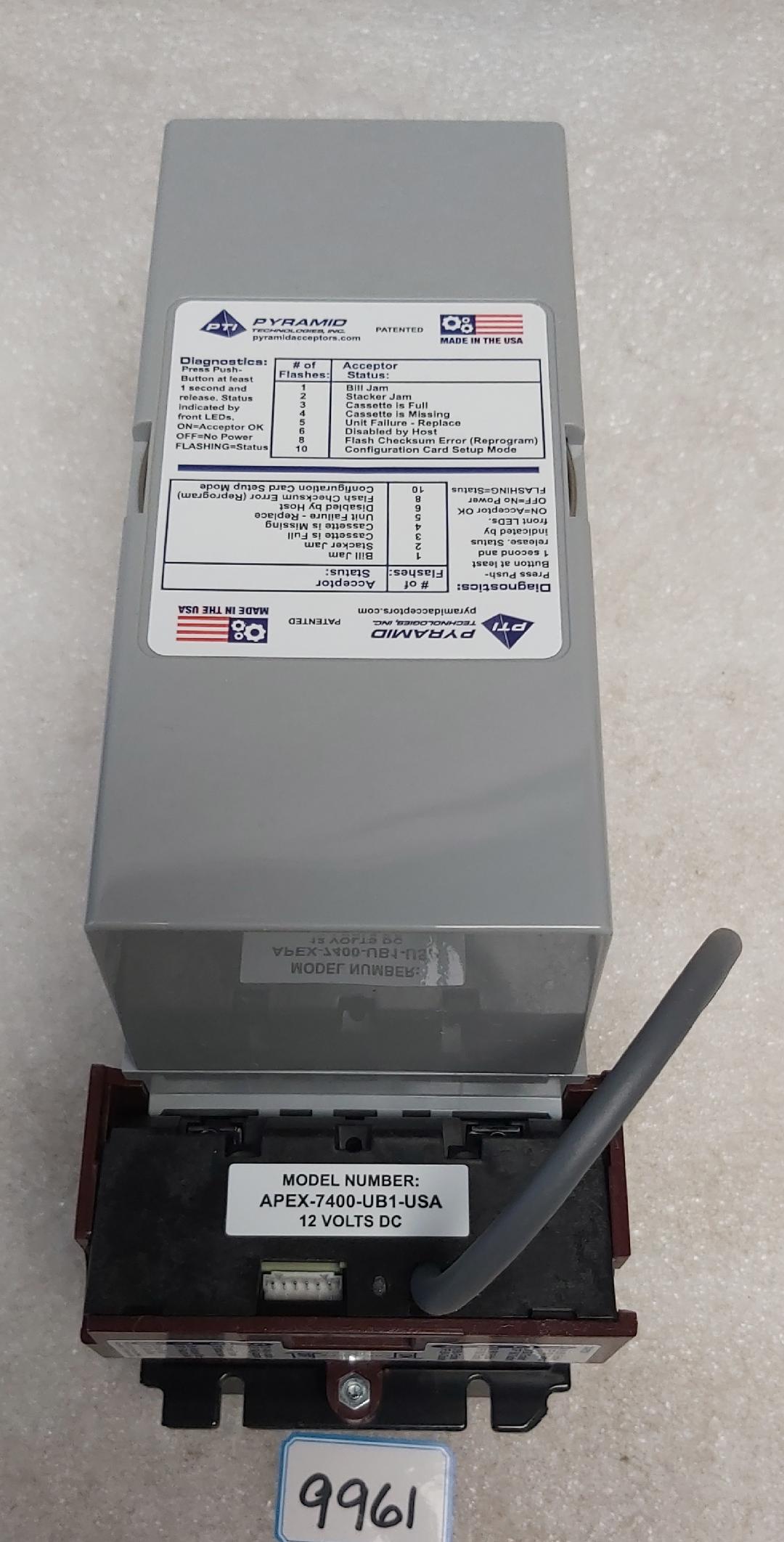PYRAMID TECHNOLOGIES APEX 7000 #7400-UB1-USA 12V DBA Dollar Bill Acceptor (9961) - NOS - FREE SHIPPING