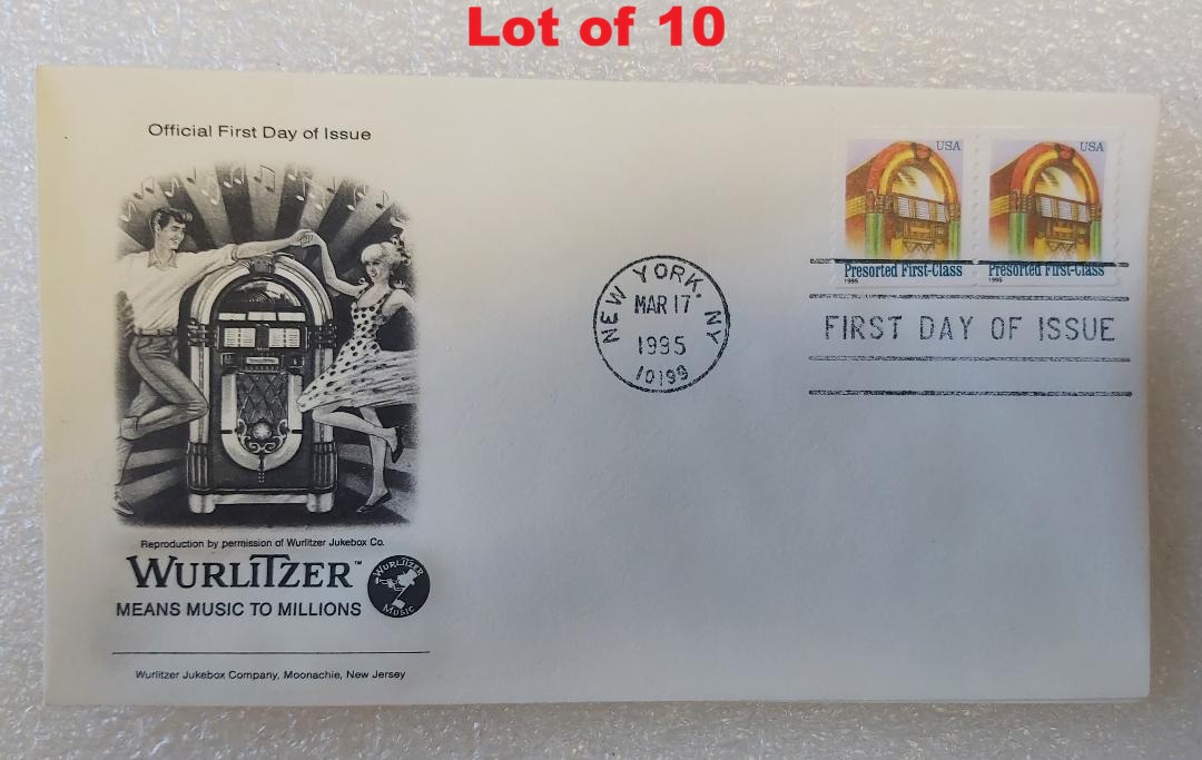 Wurlitzer 1015 Jukebox - Official US First Day of Issue 1995 Envelope & Stamp - COLLECTIBLE #9972 - Lot of 4 - FREE SHIPPING