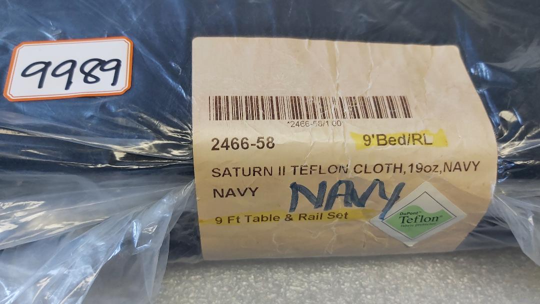 This is a New/Old Stock Saturn II Billiards Teflon Cloth Pool Table Navy 19 oz. Felt - 9' Table & Rail Set #2466-58 (9989).