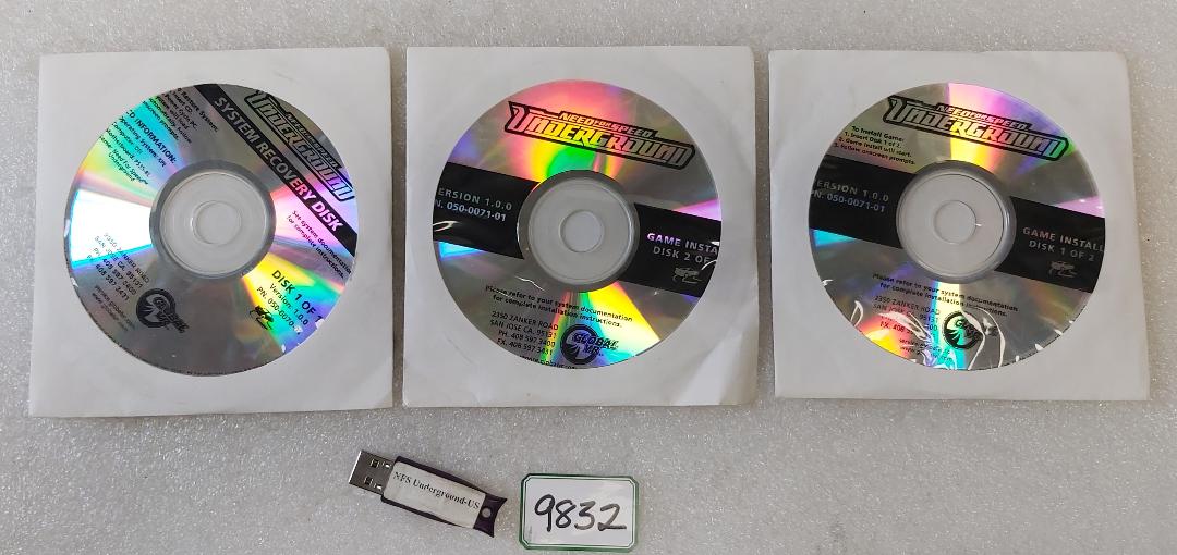 GLOBAL VR NEED FOR SPEED UNDERGROUND Arcade Game SOFTWARE & DONGLE #9832. 3 CD's & 1 Dongle - Just as pictured.