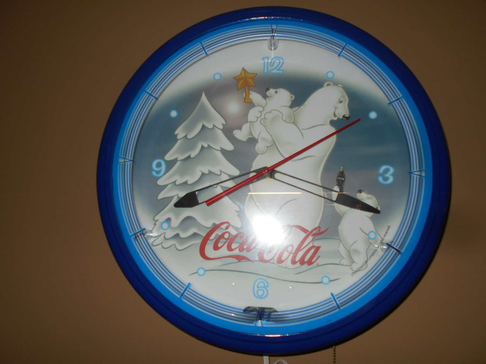 Coca Cola Polar Bears Collection Neon Clock - Official Licensed Product for sale - Sweeping second hand. This clock was hung on the wall in our Showroom.
