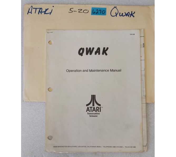 ATARI QWAK Arcade Game Operations & Maintenance Manual #6270.