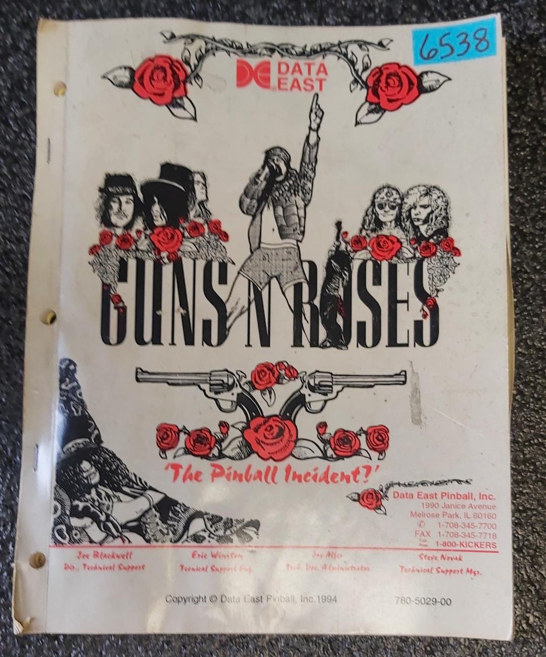 DATA EAST GUNS 'N ROSES Pinball Game MANUAL #6538.