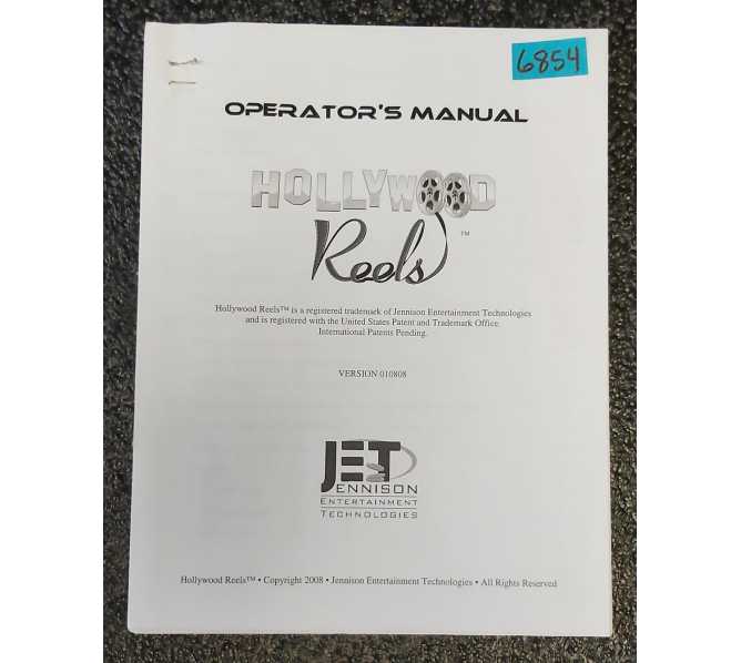JET HOLLYWOOD REELS Arcade Game OPERATOR'S Manual #6854.