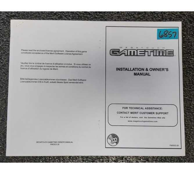 MERIT GAMETIME Arcade Game INSTALLATION & OWNER'S Manual #6857.