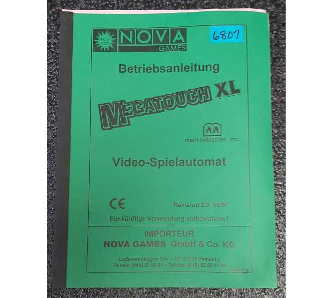 MERIT MEGATOUCH XL Arcade Game MANUAL #6807.
