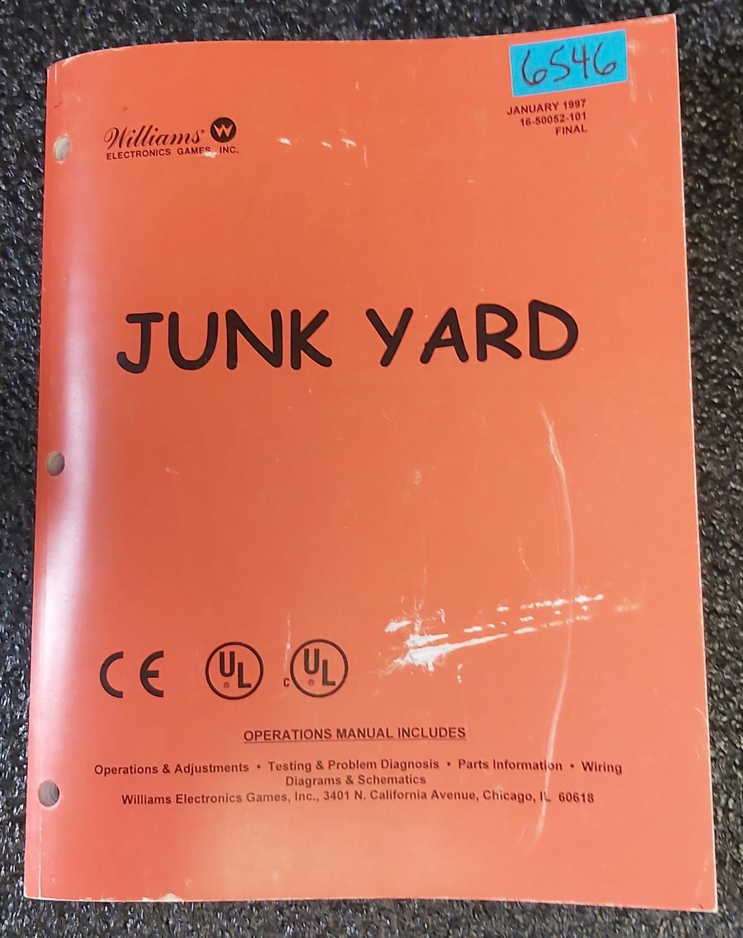 WILLIAMS JUNK YARD Pinball Game OPERATIONS MANUAL #6546.