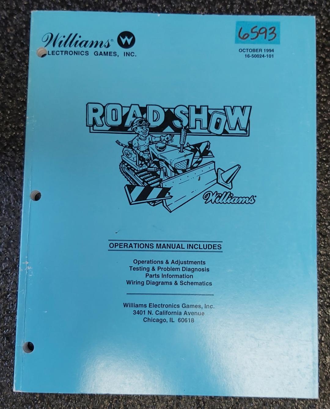 WILLIAMS ROAD SHOW Pinball Game OPERATIONS MANUAL #6593.