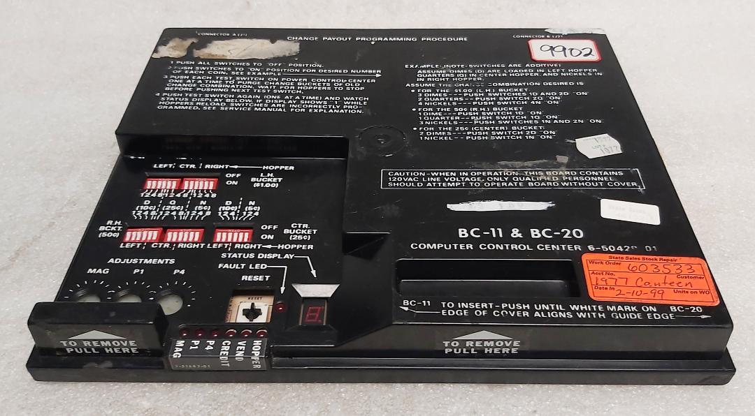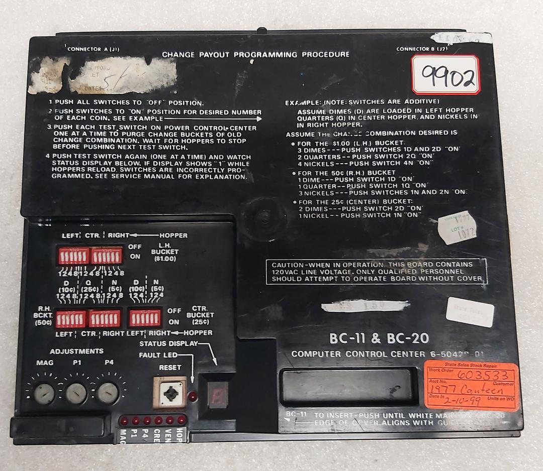 ROWE BC-11 & BC-20 Bill Changer COMPUTER CONTROL CENTER Board #6-50428-01 (9902) - AS IS - UNTESTED - FREE SHIPPING